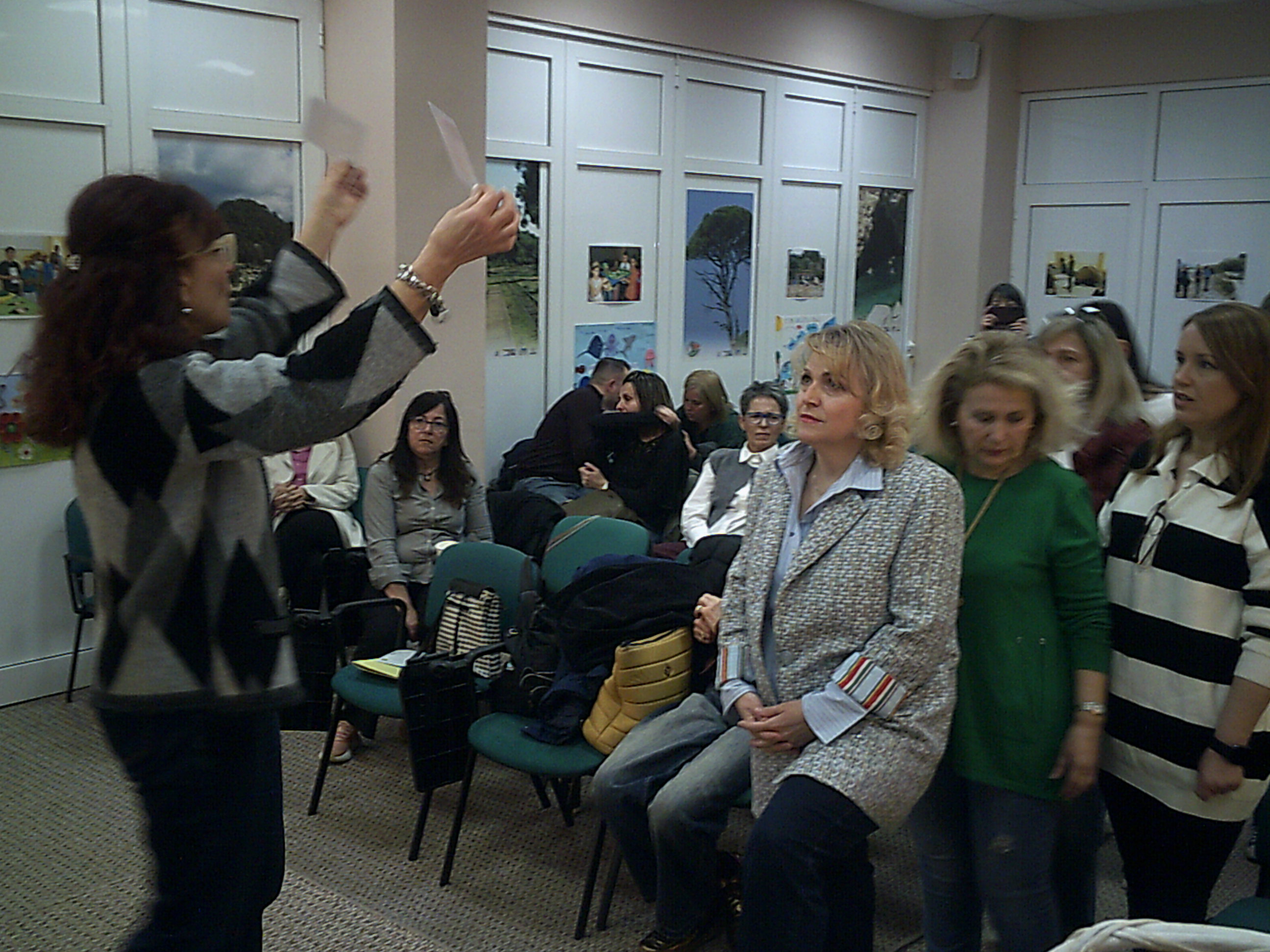 Με την ολοκλήρωση των εισηγήσεων οι συμμετέχοντες χωρίστηκαν σε ομάδες εργασίας με εκπαιδευτικά παιχνίδια γνωριμίας – επικοινωνίας και συγκρότησης ομάδας που συντόνισε το Μέλος της Παιδαγωγικής Ομάδας του Κ.Ε.ΠΕ.Α Κρεστένων Μαρία Σχοινά.